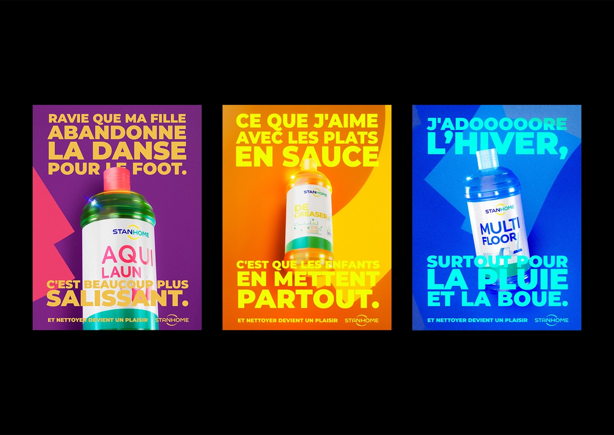 Led the rebranding and campaign proposal for Stanhome’s household products, using colorful abstract shapes inspired by the sweeping motion of cleaning. Developed 3D visuals of the bottles to bring a fresh, modern feel to the brand.